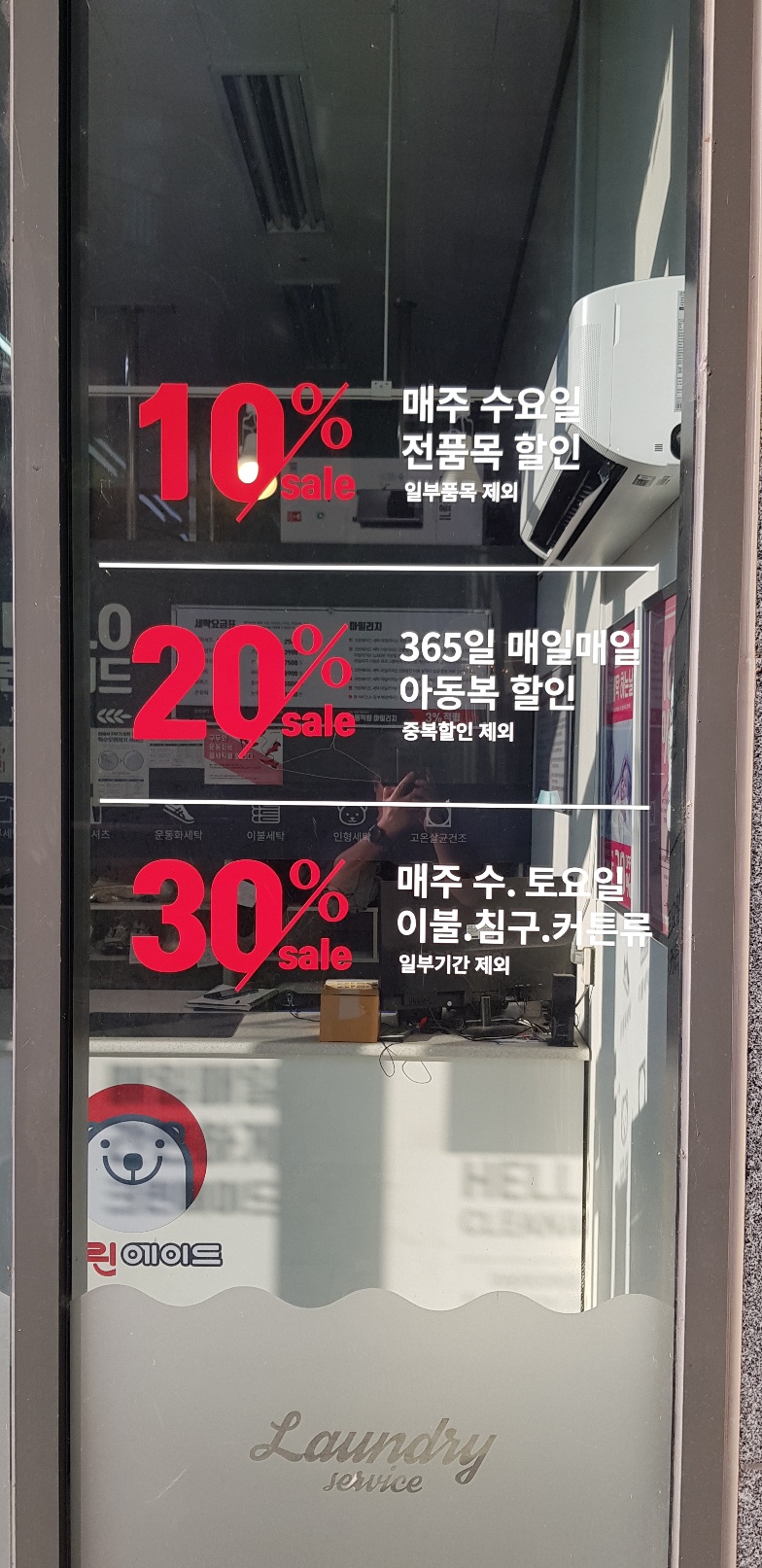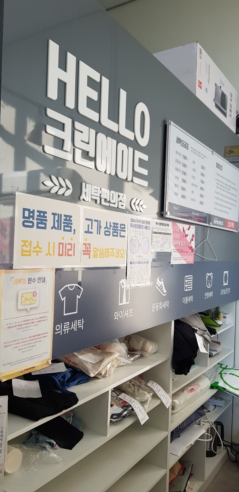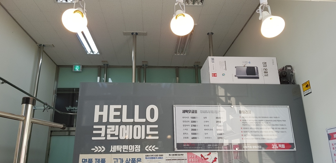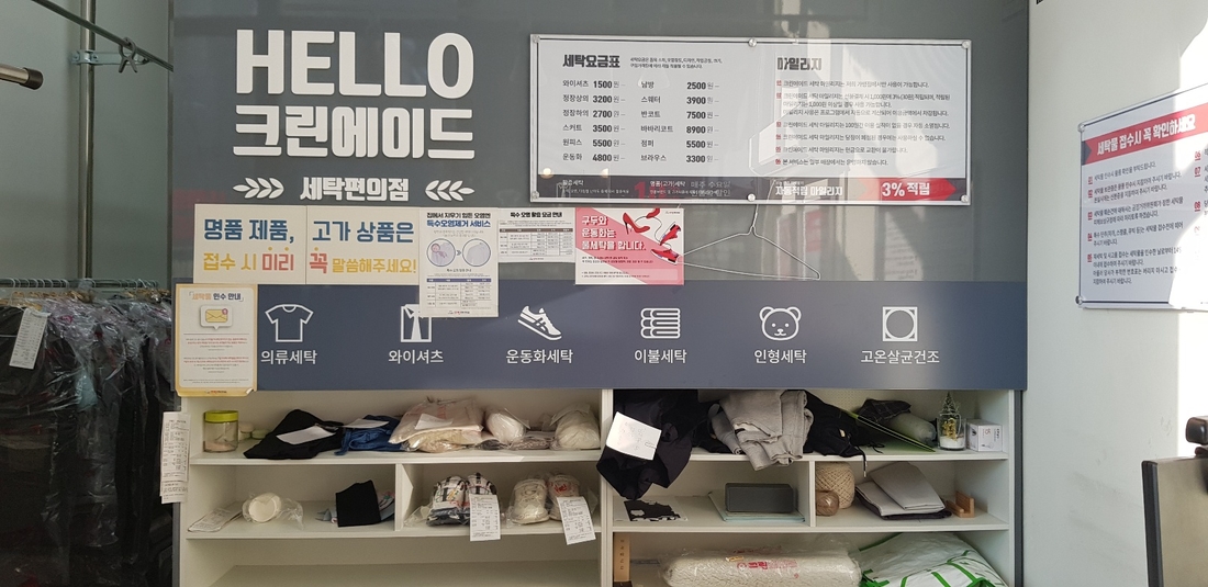 세탁소 기본 설비, 컴퓨터, 수선미싱 및 오바로크 기계, 에어컨(거의 새것), CCTV, 소파, 온풍기 등 시설과 집기 일체 비용
