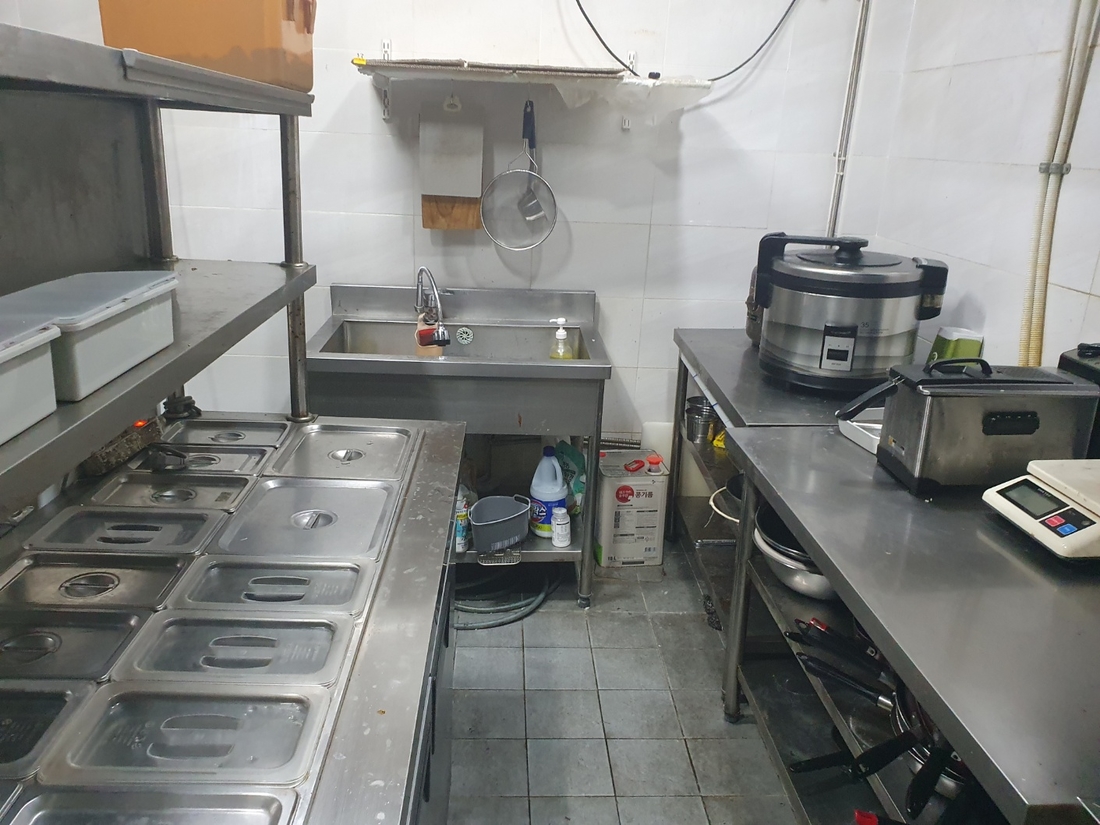 주방홀분리 주방시설 바닥잘되어있음 물청소 가능